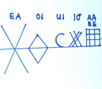 der aufrechtstehenden Grundlinie die einzelnen Buchstaben, die